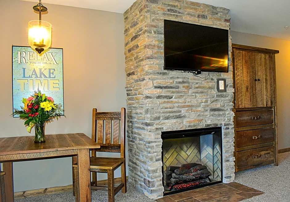 This suite's standout features are the hot tub and fireplace. Boasting a private entrance, this air-conditioned suite includes 1 living room, 1 separate bedroom and 1 bathroom with a bath and a shower. Guests will find a stovetop, a refrigerator, a dishwasher and kitchenware in the well-fitted kitchen. The suite also features a barbecue. The spacious suite offers a washing machine, a tea and coffee maker, a seating area, a flat-screen TV with cable channels, as well as lake views. The unit has 3 beds.